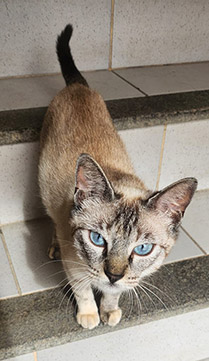 Fui adotada a 11 meses, nasci e morava na garagem do prédio. Na verdade, morava no carro do vizinho. Eram apenas eu, minha irmã Bita e minha mamãe nesta época. Ninguém cuidou dela e ela engravidou novamente. Então a 7 meses atrás, nasceram meus irmãos: Stitch (que acabou de ter filhotes), Tom e Eek (Ajudar não dói!).